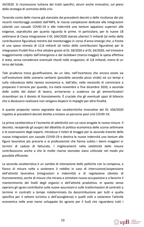 Si segnala che l'UPB - Ufficio Parlamentare di Bilancio rende pubblica sul suo sito web la Memoria sul DDL n. 1925 di conversione del DL n. 104/2020.