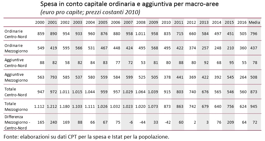 Agli obiettivi di redistribuzione territoriale e di riduzione dei divari territoriali in termini di potenzialità di sviluppo sono dirette le politiche di coesione finanziate in parte da risorse UE e in parte da fondi nazionali. Queste politiche, pur sostenendo in particolare la spesa in conto capitale nel Mezzogiorno, non hanno tuttavia impedito il declino sostanzialmente ininterrotto di tale spesa a decorrere dal 2001, con l’eccezione degli anni di chiusura delle erogazioni relative ai cicli di programmazione comunitari, in particolare il 2009 e il 2015. La riduzione ha peraltro riguardato anche il Centro-Nord, che registra a partire dal 2010 una flessione lievemente più marcata rispetto a quella del Mezzogiorno.