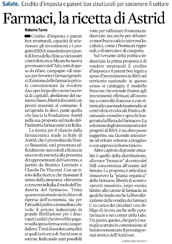 Mercoledì, 16 marzo 2016, presso la sede romana dell'Enciclopedia Italiana Treccani, Astrid presenta e discute il Rapporto: Investire e Crescere in Italia - il ruolo dell’Industria del Farmaco.